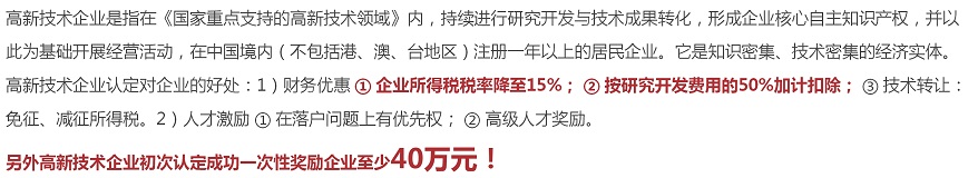 4、科研用房300平方米以上,科研資產(chǎn)總額300萬元以上(軟件類企業(yè)200萬元以上)。