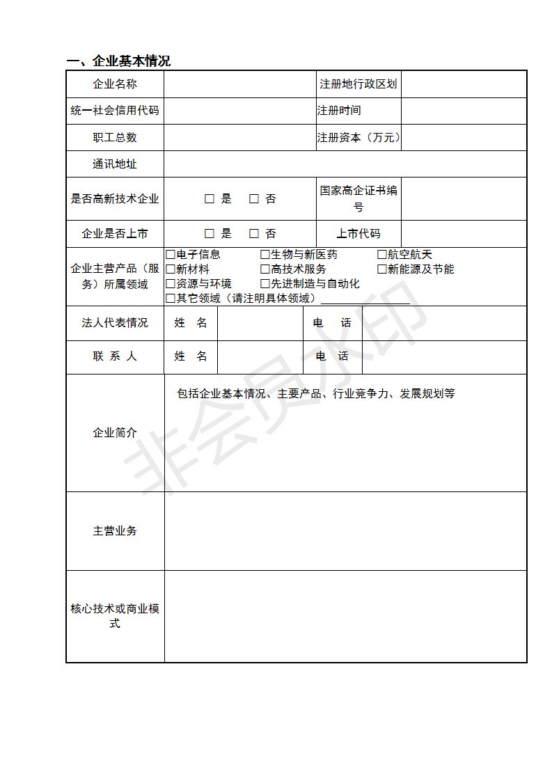 1. 臨空港開發(fā)區(qū)(東西湖區(qū))瞪羚企業(yè)認(rèn)定申請書;