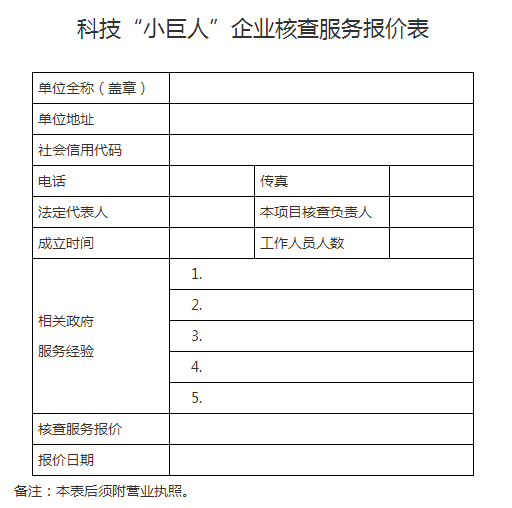 附件:科技“小巨人”企業(yè)核查服務報價表