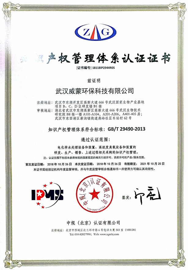 武漢威蒙環(huán)??萍加邢薰緞?chuàng)立于2011年,是一家位于武漢東湖國(guó)家自主創(chuàng)新示范區(qū)的國(guó)家高新技術(shù)企業(yè)。公司在電化學(xué)水處理、水電解制臭氧、水電解制氧制氫、磁分離等領(lǐng)域技術(shù)先進(jìn),其中“復(fù)極式電催化高級(jí)氧化電極制造技術(shù)”、“高濃度臭氧制備技術(shù)”是兩項(xiàng)中國(guó)首創(chuàng)的工業(yè)化技術(shù)。截至2015年底,公司已獲得包括5項(xiàng)發(fā)明專(zhuān)利在內(nèi)的20余項(xiàng)專(zhuān)利,以及大量的非專(zhuān)利技術(shù)。通過(guò)此次貫標(biāo)的成功認(rèn)證,完善了其整體知識(shí)產(chǎn)權(quán)管理體系的標(biāo)準(zhǔn)化、規(guī)范化與系統(tǒng)化,進(jìn)一步提升了企業(yè)的市場(chǎng)競(jìng)爭(zhēng)力!