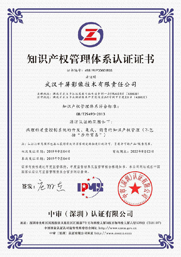 熱烈祝賀武漢千屏影像技術有限責任公司于2019年9月獲得知識產(chǎn)權貫標認證證書,公司在知識產(chǎn)權管理體系的建立、實施工作中取得階段性成果,意味著公司知識產(chǎn)權的規(guī)范進入常態(tài)化。