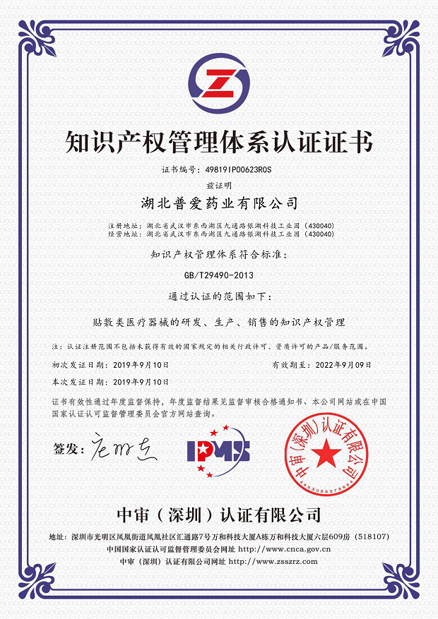 熱烈祝賀湖北普愛藥業(yè)有限公司于2019年9月獲得知識產(chǎn)權(quán)貫標認證證書,這意味著湖北普愛藥業(yè)有限公司在知識產(chǎn)權(quán)領(lǐng)域獲得到重要認可,在知識產(chǎn)權(quán)方面得到進一步規(guī)范和在綜合競爭力得到進一步提升。